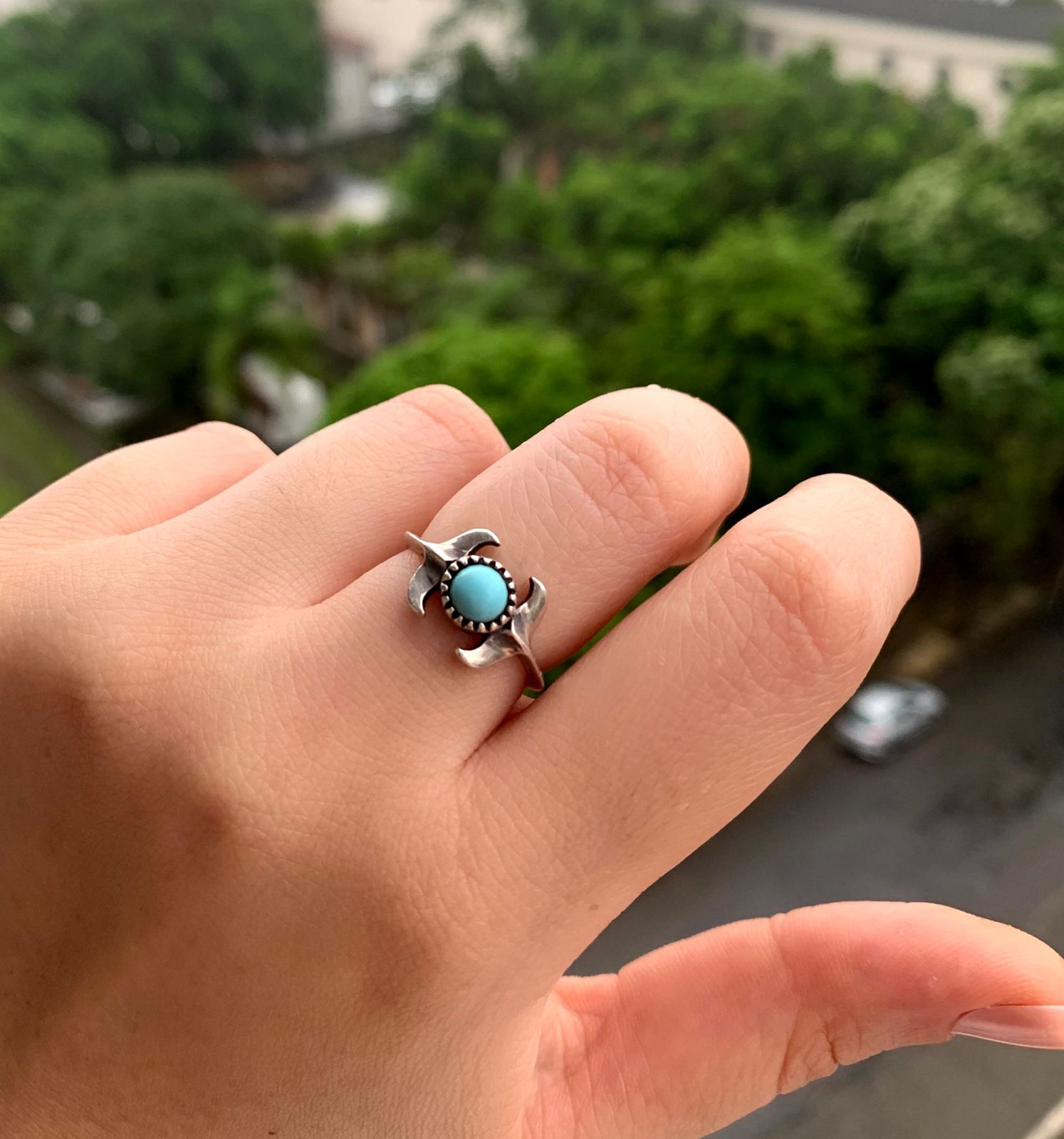 ANEL RABO DE BALEIA COM TURQUESA EM PRATA 925