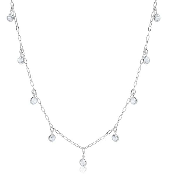 COLAR COM PINGENTES DE ZIRCÔNIA PONTO DE LUZ CRISTAL EM PRATA 925